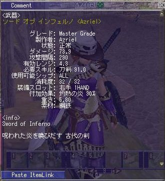 のレシピを以前教えて貰ったので ccしたついでに作ってみた かっけぇw でも、エルアンと同じなのは残念かな 変化がほしかったw 因みにルレはこんな感じ 匠使用ですよ 2本作って1本MG1本HGという・・・無念 HGの方は献上いたしましたw 売らないし使わないし邪魔だしwww MG品は飾りですはい この後は小麦を~ 黙々と刈ってたら2kになってた件w てか、わらが重いwww 他のも収穫しないとなー 最近真面目にレランしてるけど いつまで続くかな・・・w